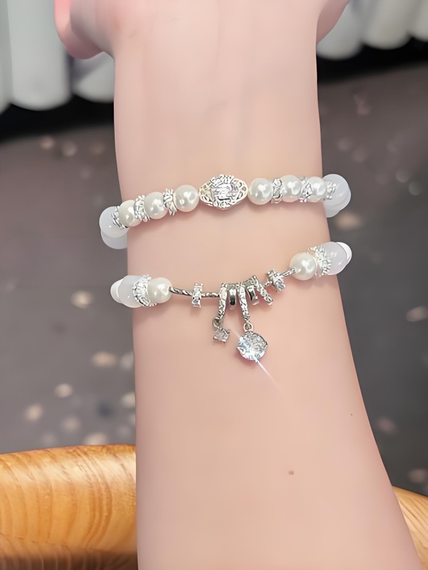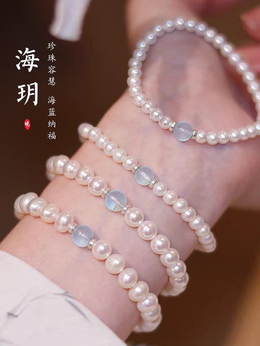 蓝珍念珍珠手链