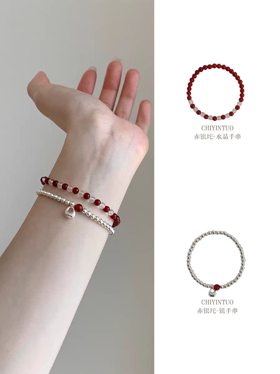 赤银坨朱砂纯银手串