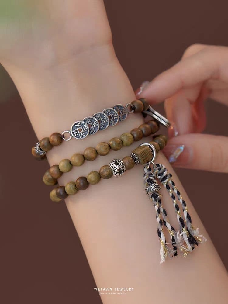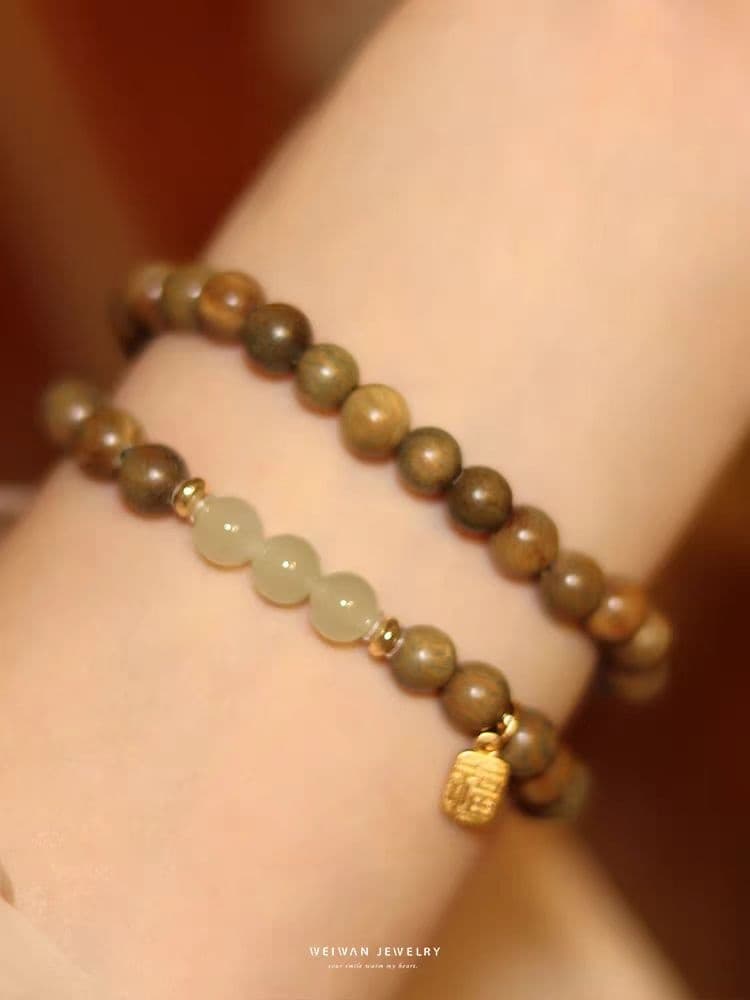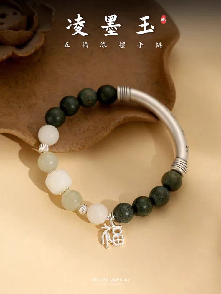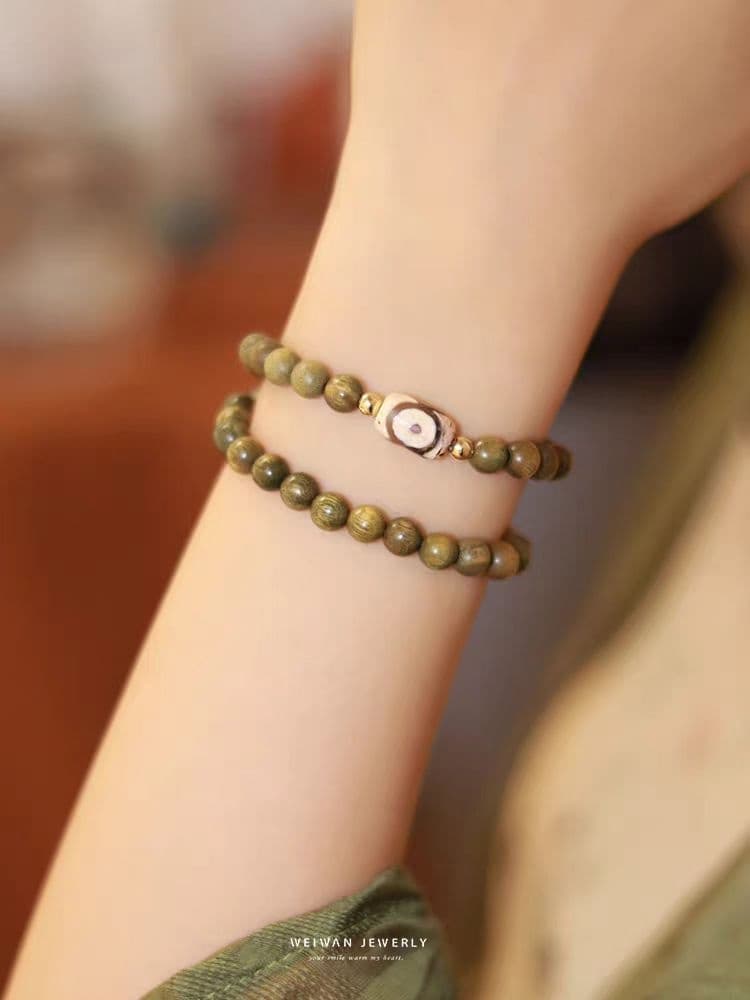 夙词欢天然绿檀木手串